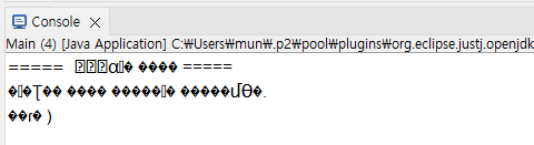 Eclipse에서 Java 작업간 출력 화면에 한글이 깨지면 아래의 방법대로 따라하니 해결되었습니다.