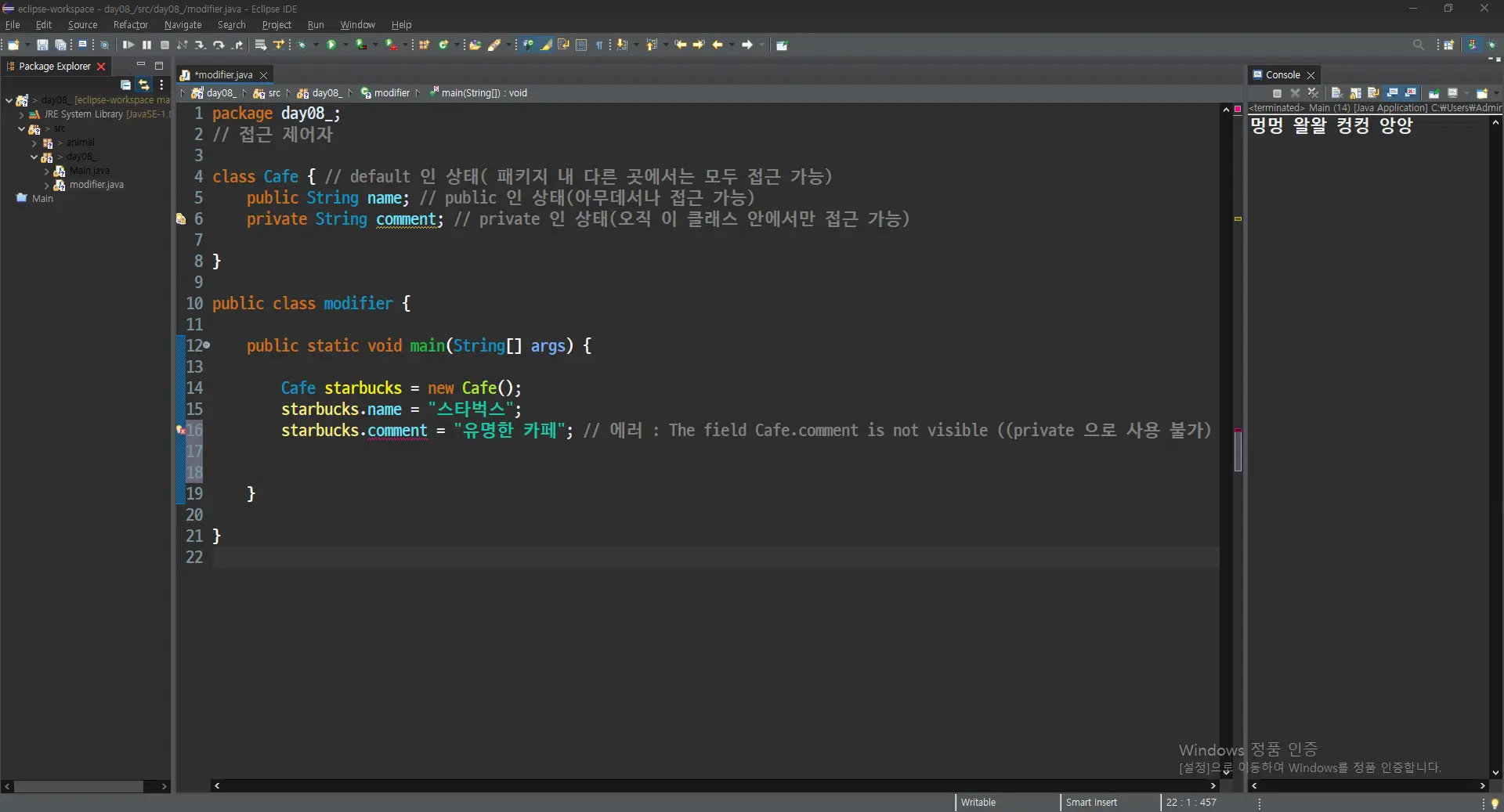 | [Java] (패키지(package)와 임포트(import)) 개념 (2) | 2022.07.08 |
